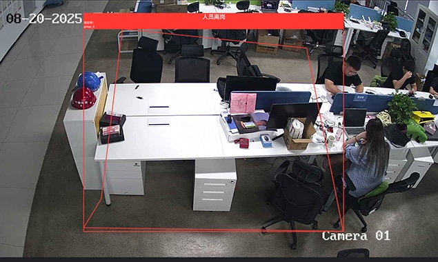 基于營業廳內現有攝像頭方案進行智能升級,實現人流統計、睡崗識別、煙火預警等AI智能識別功能,在保障升級成本的同時大幅提高管理工作效率。
